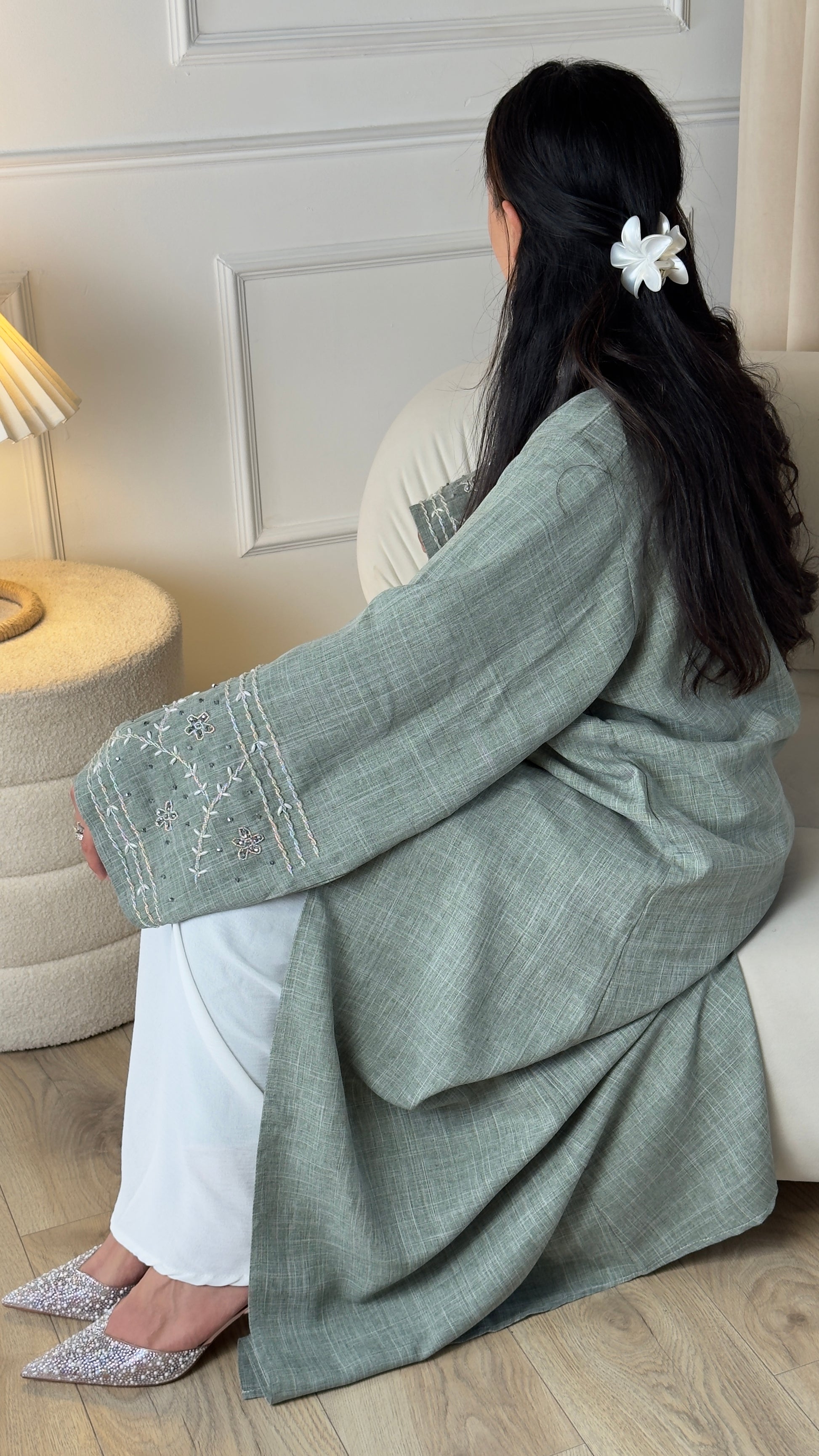 The Layali Abaya - a sophisticated 4-piece set crafted from breathable linen.