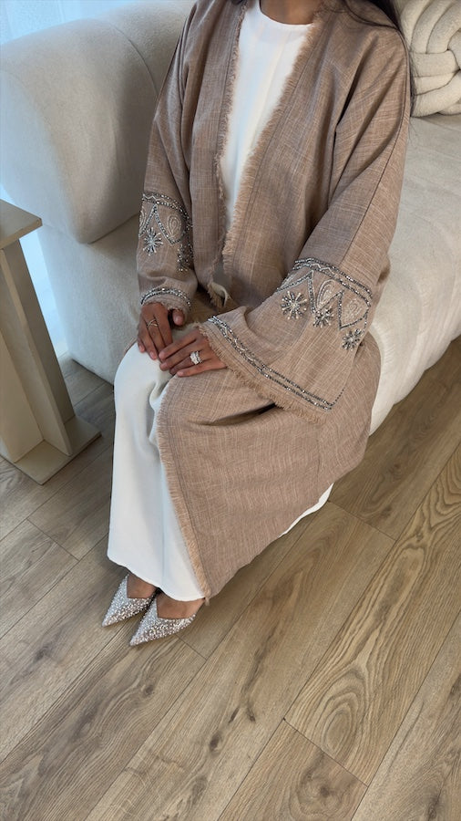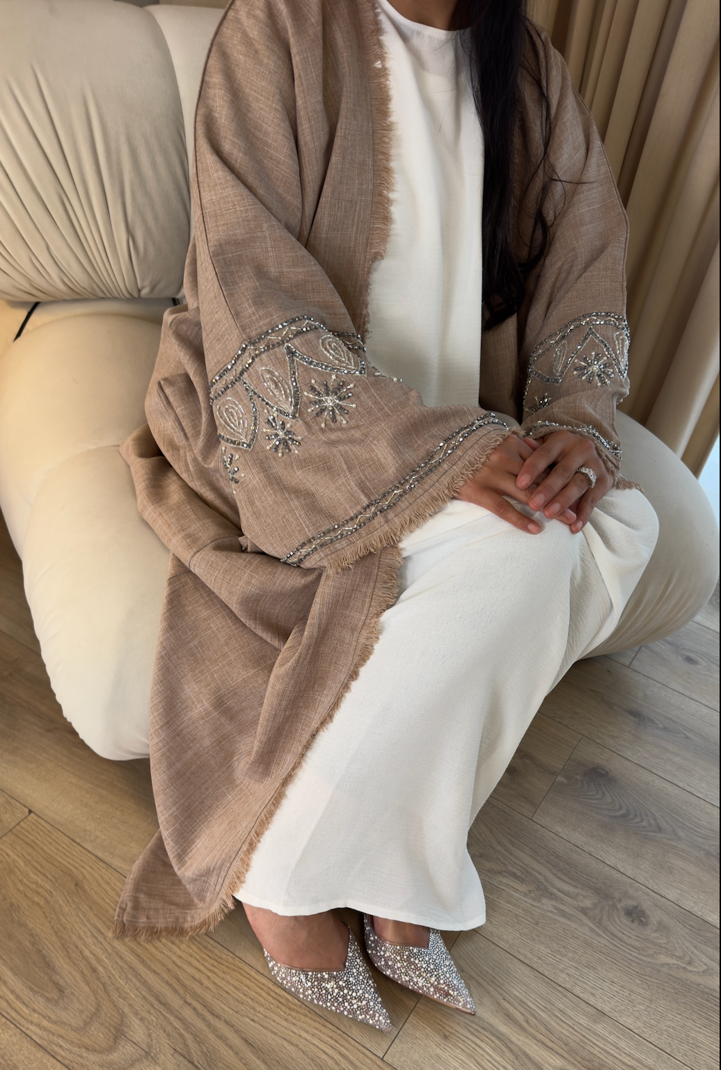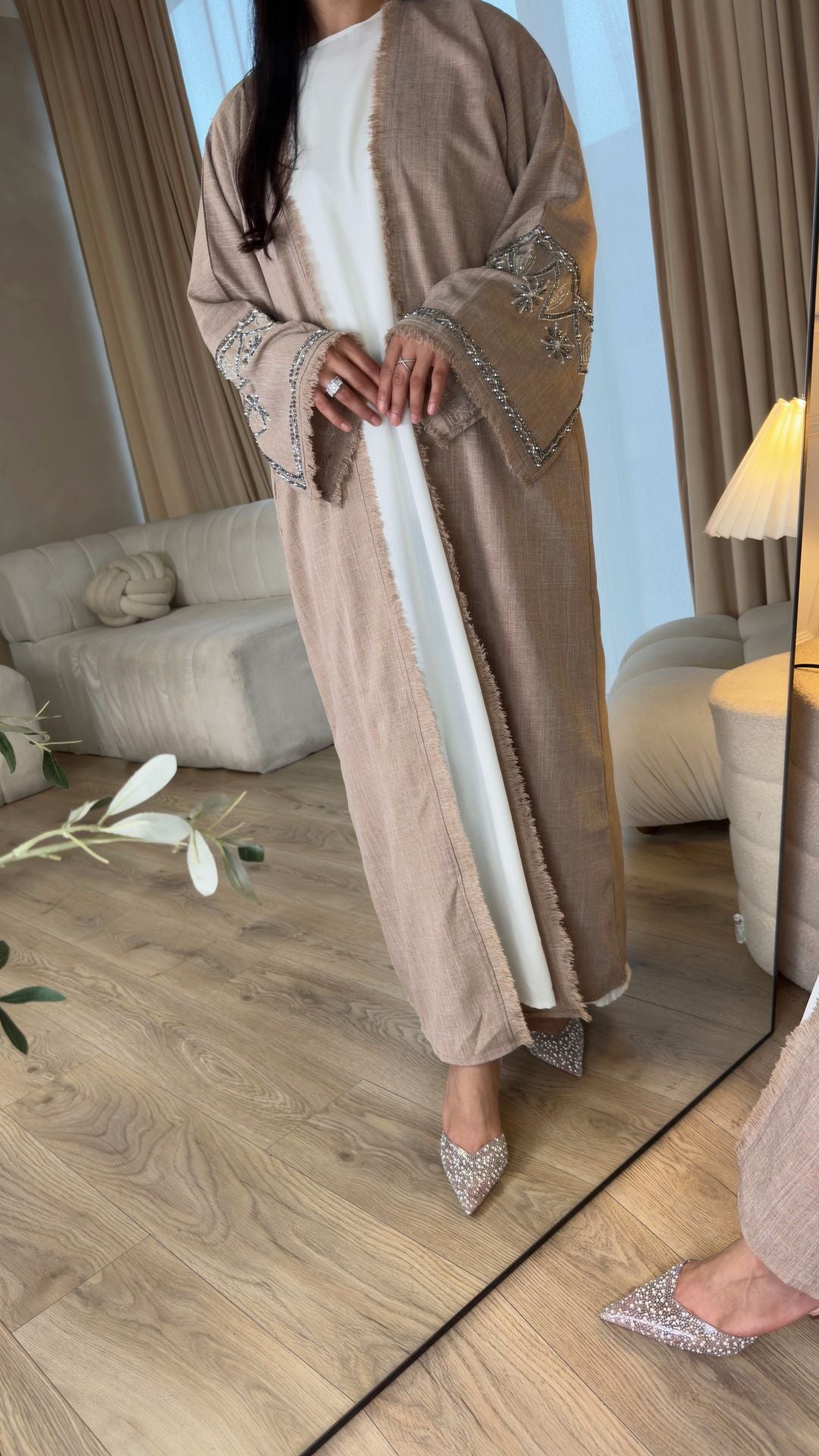 The Aya Abaya - a sophisticated 4-piece set crafted from breathable linen.